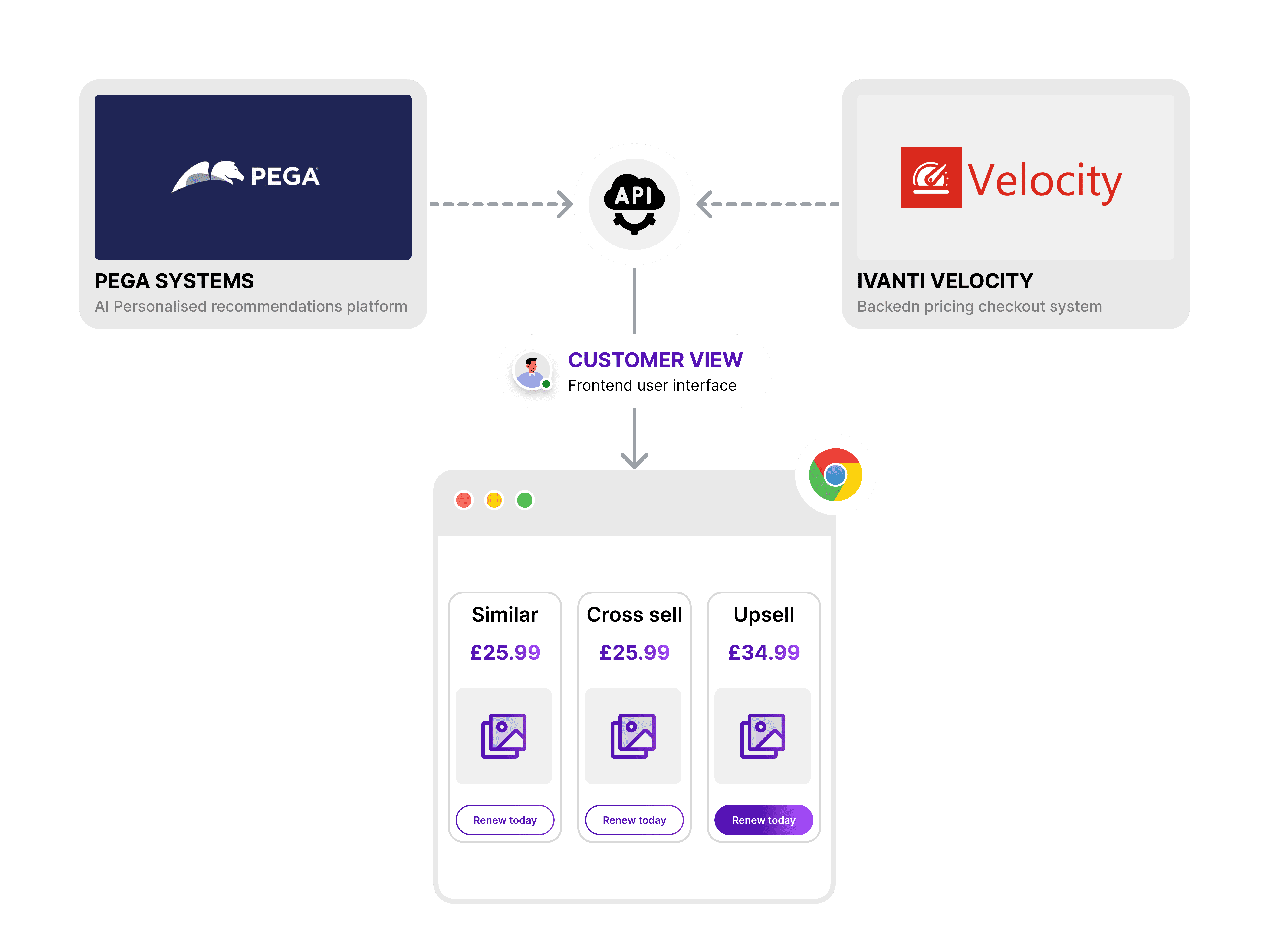 The existing BT Business sales flow relied on Pega-based recommendations and pricing, but the new checkout experience needed to run on the emerging Velocity platform used across BT Group’s One Business programme.
